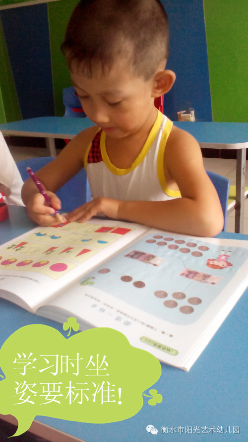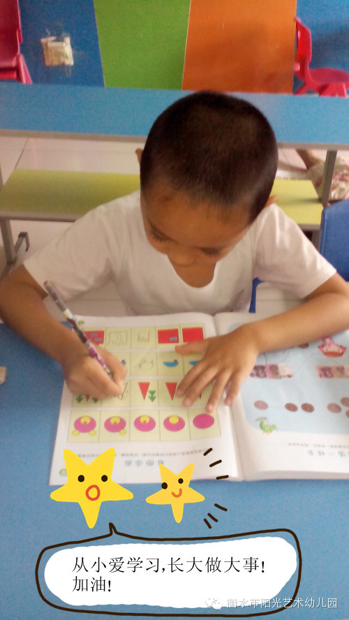 衡水阳光艺术第五幼儿园是坐落在泊乐港湾小区内的一所现代化高标准大型双语幼儿园,它以优雅的环境、现代化的设施,为幼儿提供了娱乐的场所、知识的家园、学习的乐园。 下面让我们一起分享一下正在学习中的宝贝吧! (图片拍摄:大班小朋友)