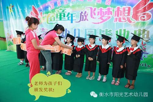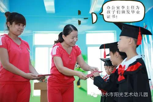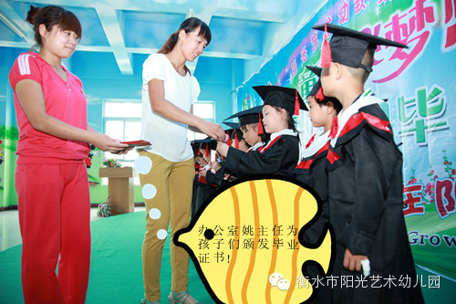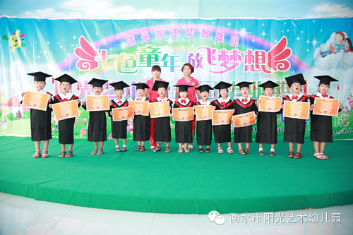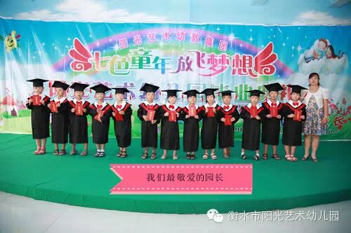 上午在衡水阳光艺术第六幼儿园(和平路新桥北街盛景茂园小区内)我们给孩子们举行了隆重的毕业典礼。典礼上老师把一张张奖状发到孩子们的手中,和孩子们相拥而泣,和孩子们欢笑合影。阳光艺术幼儿园总园长及办公室主任亲自把一本本毕业证书发到孩子们的手中,总园长对毕业的宝贝们提出了的希冀和祝福:“孩子们你们是要从这里走向更宽阔的世界, 你们就象一只只小鸟,展翅翱翔; 你们就象一只只幸福的小船,要在这里远航; 你们就象一匹匹奔腾的骏马,要在这里奋蹄; 所以让我代表阳光艺术幼儿园的全体老师表达我们最衷心的祝福:祝贺你们长大了!祝贺你们学会了许多本领!祝福你们在老师和爸爸妈妈的细心呵护下茁壮成长!祝福你们今后要继续好好学习,爱学校、爱老师、爱同伴,成为一名优秀的好学生!……”
