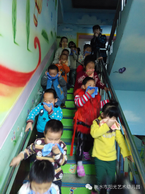 应急防火演练时,应急铃声一响,孩子们开始在教师的组织下按照定下的路线有序撤离,撤离过程中,幼儿能够按照要求不推挤和喧哗,用湿毛巾捂住口鼻迅速撤离。演练过程中,教师认真指导孩子们,负责疏散的教师到位迅速,孩子们演练认真。