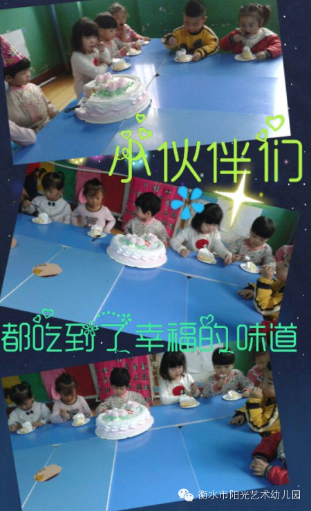 第一次在幼儿园过生日真开心呀!对孩子们来说,在幼儿园过生日比在家里过生日有趣多了,老师和小朋友们一起给她唱生日歌,并送上祝福。通过点蜡烛、切蛋糕、分蛋糕、拍照片、唱生日歌、做游戏等活动,不仅让孩子们们过了一个有意义的生日,也进一步让孩子们感受到团结友爱、积极向上的集体氛围。