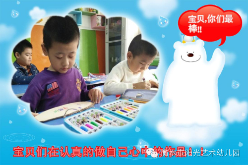 让宝贝们自由发挥,制作出自己心中美好的景象。我们为宝贝们提供最优质的条件,宝贝们开心,我们就开心。阳光四幼欢迎宝宝们的加入!
