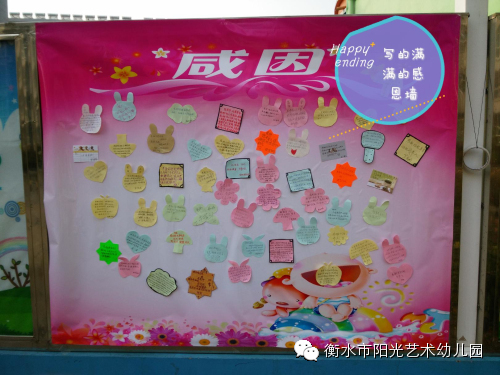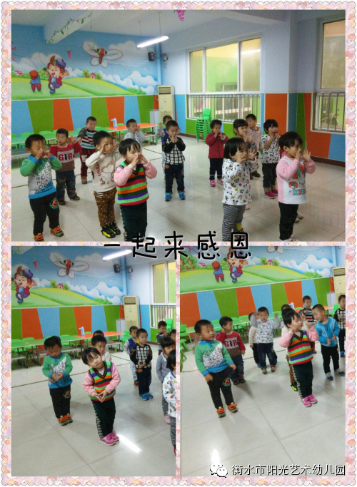 “感恩你我,真情成长”在这感恩的日子里我们阳光艺术第六幼儿园的全体师生及家长全部都参与了进来,可爱的小宝贝们保护“蛋宝宝”、做手语、帮家人捶背、洗脚…..孩子们在每一个行动演绎着她们的感恩回报,家长们也和孩子一起加入了感恩的行列,把对最想感谢的人的祝福贴满了感恩墙,每一个画面都是那么的感人,我们一起来看一下吧!