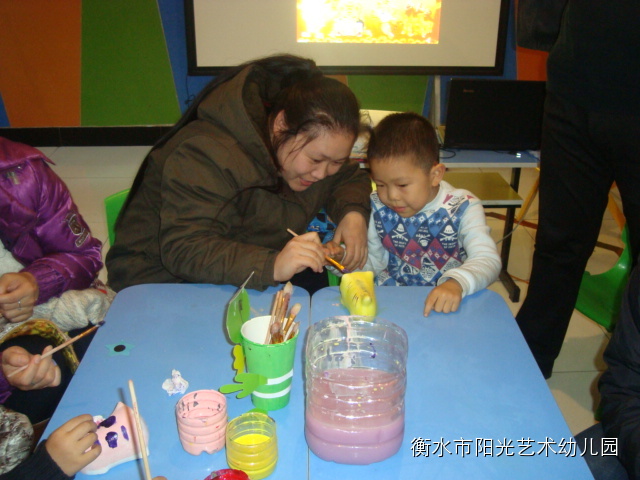 亲子活动,顾名思义,就是由家长和孩子共同参与、相互合作进行的一系列活动。通过亲子活动能进一步促进亲子关系的健康发展,增进亲子感情,为幼儿与家长、教师与家长、家长与家长之间搭起一座沟通的桥梁。为此2014年11月30日我们阳光艺术第三幼儿园开展了一场别具特色的亲子绘画活动。