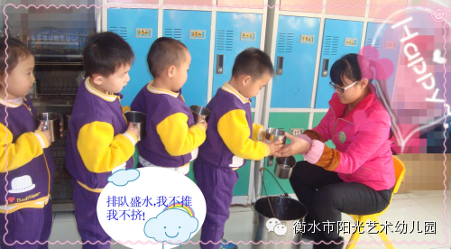 辛苦的老师在为我们盛水,多喝水不感冒!