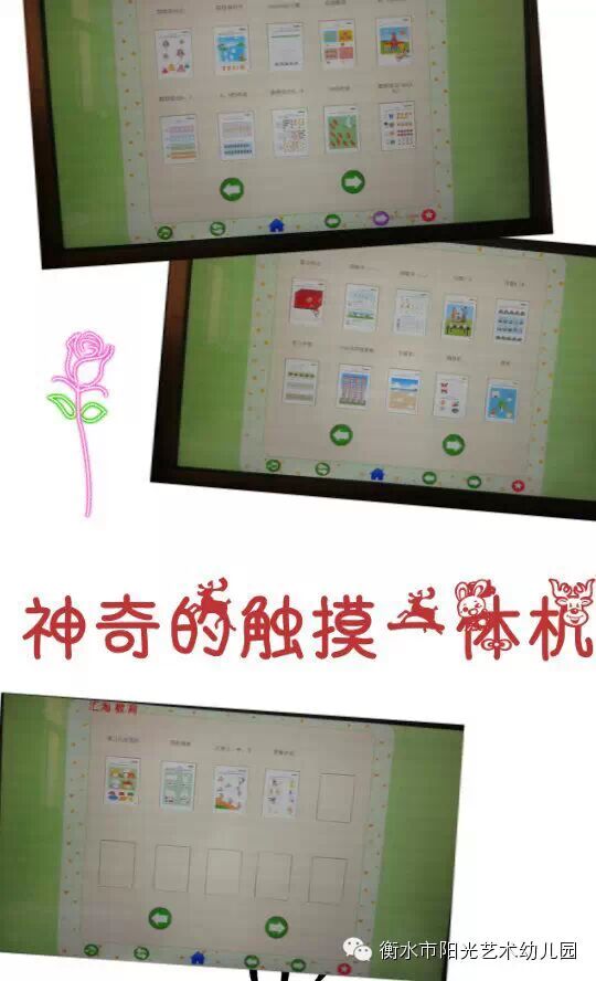 快乐的学习是在让孩子游戏中、活动中体验学习的乐趣,我园配备的教学设备:触摸式一体机。使我们的教学方式更加规范化和专业化,也让我们的孩子们可以在学习中获得更多的乐趣!