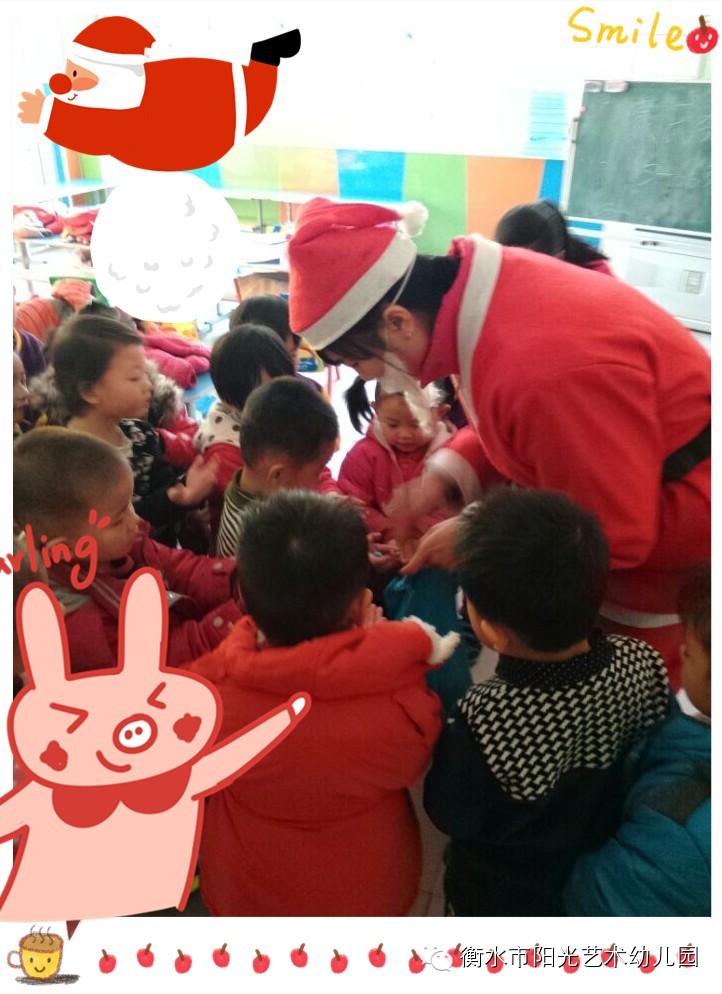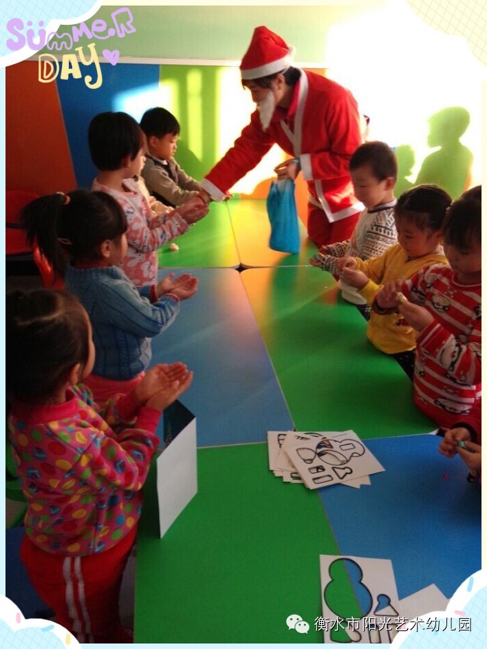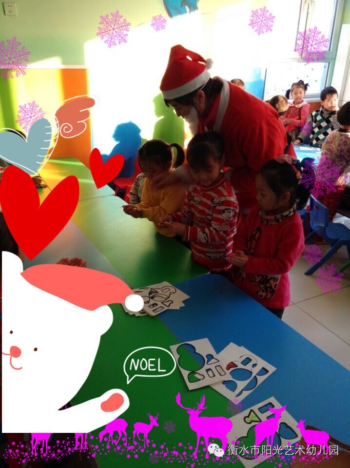 阳光艺术第五幼儿园在圣诞节那天为小朋友们请来了可爱慈祥的圣诞老爷爷!圣诞老爷爷迎接小朋友们上学,为小朋友们准备了礼物。