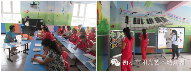 十七、自2014年8月23日起至8月31日阳光艺术幼教集团各园所陆续开展了对新学期教师各个课程的培训,其中包含蒙氏数学、分级阅读、英语、我的身体会唱歌、东方之星思维课程等。