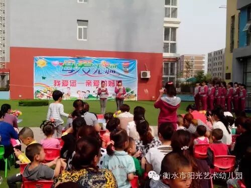 衡水阳光幼教集团 衡水市阳光艺术幼教集团,现下设十二家连锁幼儿园,是目前衡水市规模最大,分园园所最多的幼儿园。几年来幼儿园凭借优质的教育,多彩的活动,给宝贝们带来了快乐的童年,幸福的成长! 下面就让我们一起来回顾一下我们2014年精彩的活动篇章吧! 2014年2月14日上午我园李文敬、王爽、王玉鑫等为民生银行组织的“小鬼当家我最棒”亲子活动做了评委。 2014年2月14日下午2点至4点半,阳光艺术幼儿园教师身着可爱的卡通服到人民广场、怡水园与可爱宝贝们互动合影! 2014年3月8日妇女节阳光艺术幼教集团各园所用自己的方式和妈妈们一起渡过了这个快乐的节日,通过亲子活动,感恩故事、儿歌让孩子学会用行动来表示对妈妈们的爱,家长们认真填写了反馈卡,共同记录下和宝宝渡过的这个难忘的节日。 2014年3月12日植树节阳光艺术幼教集团的宝宝们和家长们共同栽种了植物,并让宝宝将植物带到幼儿园观察它的成长历程,让宝贝从小了解植物的生长过程,从小产生爱护植物的意识。 2014年4月20日阳光艺术幼教集团第四幼儿园携手民生银行永兴支行,在宝云街与永兴路召开了“阳光宝贝向前冲”春季亲子运动会。 2014年5月8号阳光艺术幼教集团各园所分别召开了“母爱无疆——我爱您亲爱的妈妈”母亲节特别活动。 自2014年5月24日开始阳光艺术幼教集团各园所陆续开始六一精彩演出。 2014年5月31日下午阳光艺术幼教集团幼儿节目《雨伞舞》、《欢腾》、《千手观音》、《马兰谣》参加了温莎花园售楼中心的“情聚温莎 趣享六一”的演出,充分展现了阳光幼儿的风采。 2014年6月2日上午阳光艺术幼教集团幼儿节目《雨伞舞》参加了香榭丽都开盘典礼的演出,阳光艺术幼教集团懂事长马素霞为开盘典礼做了剪彩,并为中奖业主颁奖。香榭丽都成为我园为合作小区,小区内的幼儿园正式定为阳光艺术幼教集团的第九幼儿园。 2014年6月3日阳光艺术幼教集团参加了衡水职教中心的毕业生双选会,会上董事长马素霞做为衡水唯一的幼儿园代表做了发言,并为优秀毕业生颁奖合影。当天有20余名专业幼师加入了我们阳光的团队。 2014年6月11日起阳光艺术幼教集团各园所召开了“大班升学前班家长会”,让家长们充分全面的了解到我们是如何对宝贝进行幼小衔接教育的。2014年6月15日阳光艺术幼教集团各园所举办了“父爱无疆”父亲节亲子活动。 衡水阳光艺术幼教集团自成为衡水学院学前教育系的实习实训基地以来,凭借园所的发展规模每年为学院学前教育学生提供广泛的实习就业岗位。2014年6月26日衡水学院到阳光艺术幼教集团第四幼儿园进行采访,并将采访内容上传学校网站。