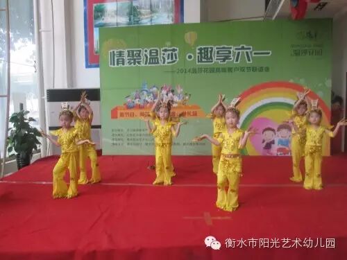 2014年5月31日下午阳光艺术幼教集团幼儿节目《雨伞舞》、《欢腾》、《千手观音》、《马兰谣》参加了温莎花园售楼中心的“情聚温莎 趣享六一”的演出,充分展现了阳光幼儿的风采。