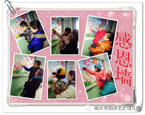 2014年11月24日至28日是阳光艺术幼教集团的感恩周,我们各园分别举办了多种活动,让宝贝学会感恩,如保护蛋宝宝、蓝丝带、填写感恩祝福……