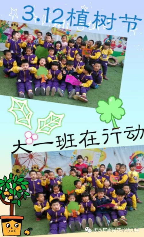 衡水市阳光艺术幼教集团 “3.12植树节”宝贝在行动 爱护树木,人人有责 阳春三月,草长鹰飞间,冬天的寒意还未褪尽,春天带着绿色的气息向我们走来,春风吹绿了枝头上的嫩芽,吹绿了地上的小草,也吹动了阳光总园孩子们的热情。3月12日是一年一度的植树节,为使孩子们能够更好的感受到如何爱护花草树木,咱们每一个班教师依次带着宝贝参与植树节的相关活动,亲身体验劳动的乐趣,感受美化环境的意义。 宝贝在实践中体验到了劳动的乐趣。现在就让我们一起看看这些优秀的宝贝精彩的表现吧!