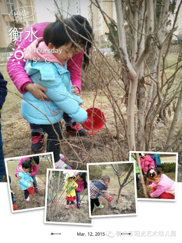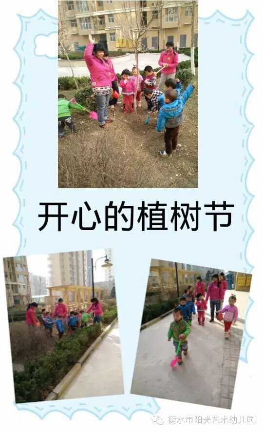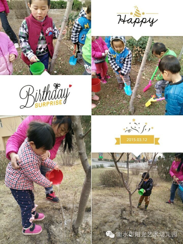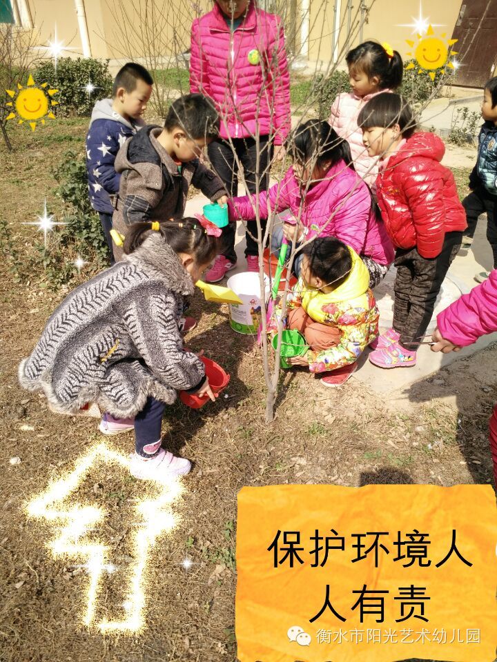 衡水市阳光艺术幼教集团 “3.12植树节”珍爱绿色 我们共同的家园 给地球一点色彩,一起动起来哦!小朋友都有贡献出自己的一份力量,让地球长出美丽的头发,让地球妈妈更年青。看看阳光八幼的小朋友们怎样给小树浇水和他们自己种的小盆栽吧!