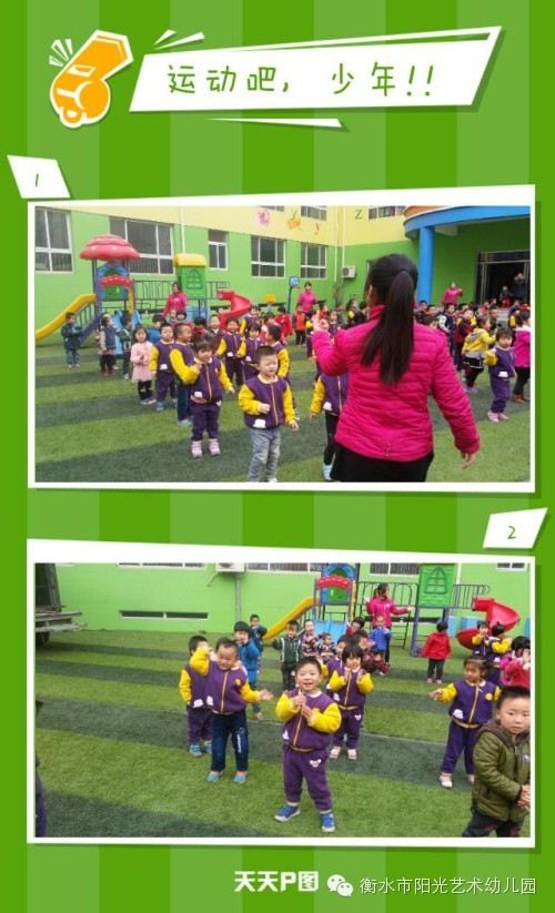 天气越来越暖和了,我们阳光艺术第六幼儿园为小朋友们安排了早操,通过早操,全面锻炼小朋友们的身体,使小朋友们逐渐进入积极活跃的状态,开始新的一天。 下面就让我们一起去看一看我们阳光艺术第六幼儿园小朋友们的风采吧!