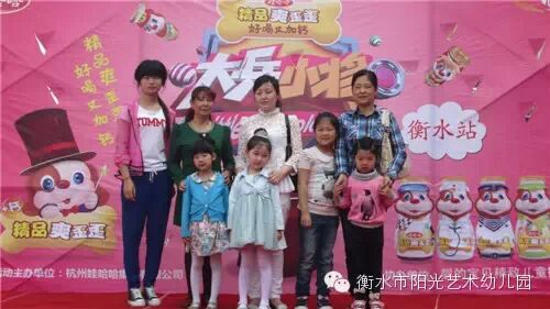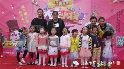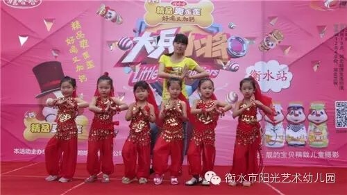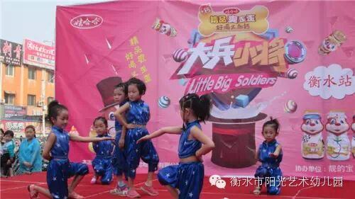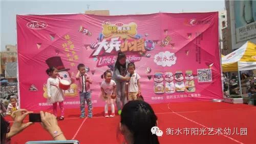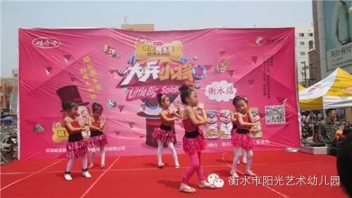 2015年5月1日是全国劳动节,也是家长和孩子们放假休息的日子,就在这一天我们的各园所的老师、家长、和孩子受邀来到了衡水信发商厦门口,参加河北电视大兵小将衡水站的海选。 早上还不到八点我们的老师和家长便带领宝贝们来到了海选现场。老师们开始给孩子们化妆、梳头、换演出服,许多家长也和老师一起忙碌起来协助老师给孩子们化妆换演出服。 参加此次海选的有衡水其他幼儿园及各种艺校的共计24个节目,其中包含我们阳光艺术幼教集团各园所的13个节目。通过激烈的角逐,我们集团的节目荣获了三等奖顺利晋级,也是此次活动中独家晋级的幼儿园。期待着我们的宝贝们在复赛中有更精彩的表现,为我们的宝贝们加油! 下面就让我们一起走进海选现场,看看宝贝们的精彩表演吧! 五园--快乐的一天开始了 ! 五园--快乐小猪 三园--荷塘月色 二园--小星星洗澡 六园--快乐宝贝 七园--我有一个家 七园--三句半 总园--印度舞 四园--洗刷刷 总园--小苹果 快乐的表演结束了,小宝贝们和家长,老师一起合影,庆祝本次活动宝贝们取得的优秀成绩!让我们一起鼓掌吧!