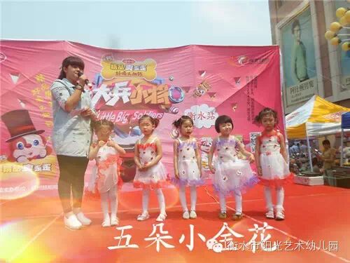 大兵小将是河北电视台的知名栏目,许多宝贝们在这个舞台上展现了自己的才华,成为一颗耀眼的童星。5月1日大兵小将栏目组的海选活动来到了衡水,在衡水信发商厦拉开了序幕。许多艺术学校的大哥哥大姐姐纷纷登台献艺。我们阳光艺术第七幼儿园虽然刚刚开园,但我们的宝贝们也受邀请参加到了本次活动,在这个舞台上我们宝贝们的年龄是最小的,她们的表演还很稚嫩,但她们能够站在这个舞台,能够敢于面对现场这么多陌生的观众表演,她们已经迈出了成长的一步,成功的一步。这也会给我们宝贝们的艺术生涯奠定良好的基础,相信通过宝贝们几年的幼儿园锻炼,她们定能够从各个方面成长很多进步很多,让我们期待着明年宝贝们更加精彩的展示!
