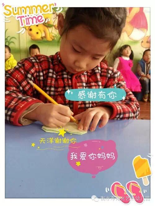 在母亲节来临之际,我们阳光二园的宝贝们,也在用自己的行动谱写对母亲的爱,让我们共同进入这感恩进行时……