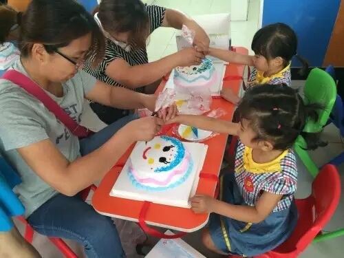 2015年6月17日下午,我们第二季亲子蛋糕DIY活动伴着欢快的音乐在五园拉开了帷幕,本场活动总计50多名亲子家庭参加,我园幼教老师还精心为孩子准备了互动游戏,现场分享,感恩歌曲,看着孩子们和家长们大手牵小手,精心的做着这份属于爱的蛋糕,每一个环节无不让家长和孩子们感受到“爱”的力量。