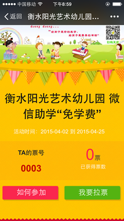 宝爸宝妈,快快邀请你的微信朋友为宝贝的“就学基金”投票吧!