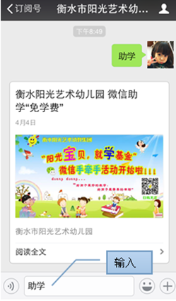1.关注“衡水阳光艺术幼儿园”公众平台;